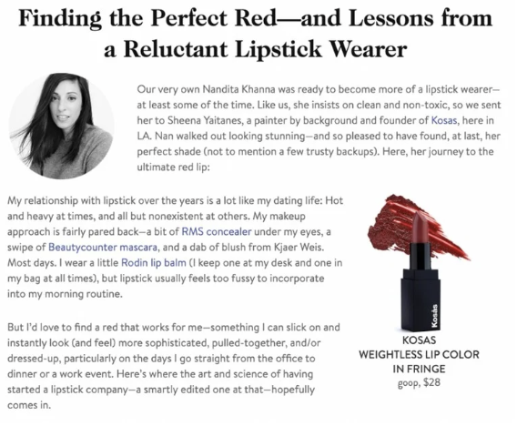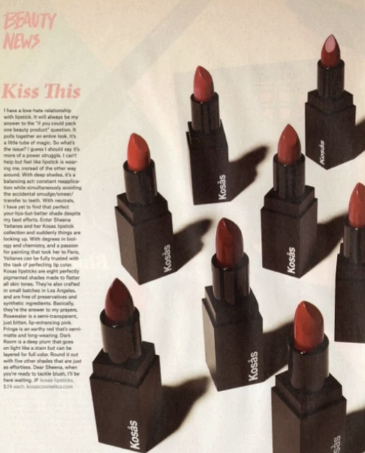 KLRPR worked alongside founder Sheena Yaitanes from pre-launch through the brand’s critical first 3.5 years. By building grassroots buzz through key relationships with editors, celebrity makeup artists, and buyers, we garnered influential support from those drawn to the brand’s chic, universally flattering color palette and minimalist approach to beauty. Eventually expanding into and innovating other categories of makeup, Kosas caught the eye of the industry and the company received significant investment in 2018.