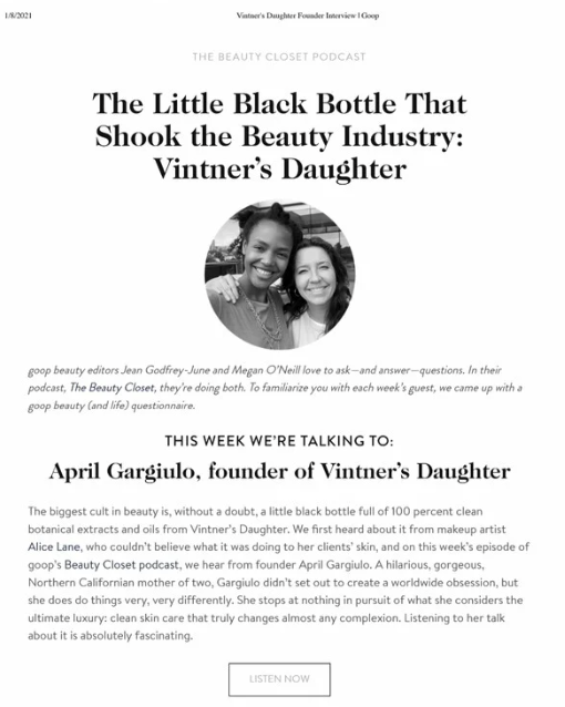 A luxury skincare brand founded on a single hero product, KLRPR partnered with founder April Gargiulo shortly after launch through 2021 to intentionally build a cult-status brand and establish her as a thought leader. This was achieved through an authentically curated press and ambassador strategy at a time when the beauty playbook prioritized constant news and rapid launches