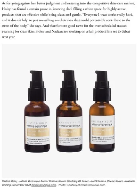 First launching the intelligent skincare brand’s partnership with skin guru Kristina Holey with an exclusive Vogue feature, over the span of 7 years, KLRPR established Marie Veronique as the industry go to for products and education firmly rooted in skin health.